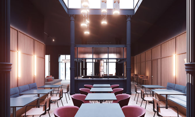 Se encarga la realización de dos estancias dentro del hotel. Una zona de recepción o lobby que se articula junto a un desayunador o comedor y una zona de coctelería o bar que pueda estar en funcionamiento todo el día.